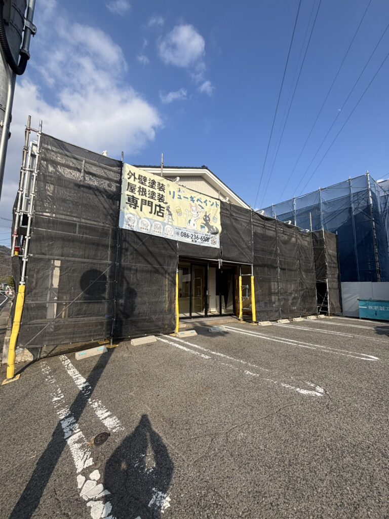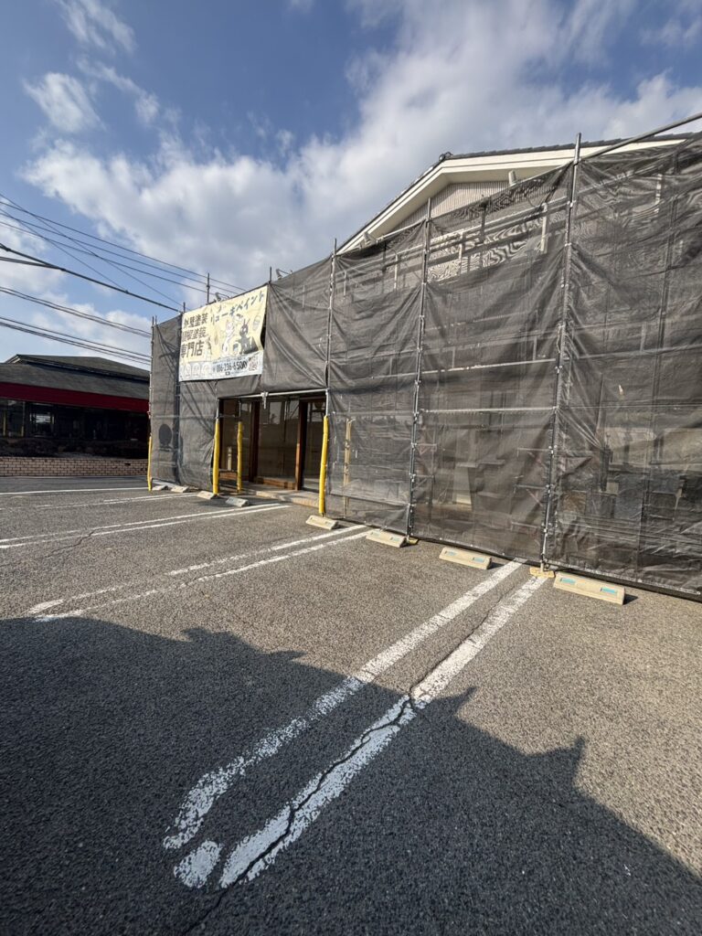 現在はオープンに向けて準備中のため、外観は足場・養生シートがかかっておりますが、